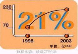 - 據(jù)CTI論壇轉(zhuǎn)引有關(guān)統(tǒng)計數(shù)字表明,全球呼叫中心外包市場1998年的產(chǎn)值為170億美元,2003年有望達(dá)到420億美元,并正以每年遞增27%的速度快增長;