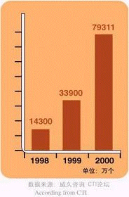 - 截至2000年底,我國總共擁有客戶服務(wù)中心座席數(shù)量7.9萬多個(不包括尋呼企業(yè)的座席數(shù)),市場總規(guī)模達(dá)到83.59億元。