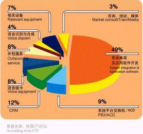 - 中國CRM市場正在快速增長,從事與呼叫中心有關(guān)產(chǎn)品、服務(wù)和運(yùn)營方面的廠商數(shù)量約為620多家。其中,系統(tǒng)集成及應(yīng)用軟件開發(fā)商的數(shù)量占有49%的比例,是呼叫中心從業(yè)廠商中最為主要的組成部分。