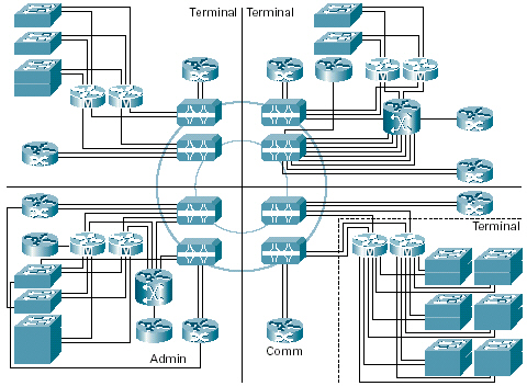 Catalyst 6500交換機(jī)的MPLS網(wǎng)絡(luò)。它可以為該機(jī)場(chǎng)的內(nèi)部網(wǎng)絡(luò)、每個(gè)航空公司的網(wǎng)絡(luò)和其他租戶(hù)服務(wù)提供第三層劃分。該MPLS網(wǎng)絡(luò)還部署在一個(gè)采用了Cisco