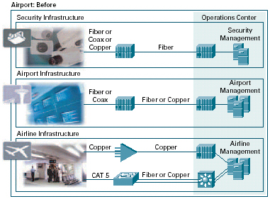 。。由于預(yù)算不斷波動(dòng)、物理空間有限,且已對(duì)網(wǎng)絡(luò)基礎(chǔ)設(shè)施進(jìn)行了投資,當(dāng)前的機(jī)場(chǎng)和航空公司無(wú)法承受巨大的商業(yè)風(fēng)險(xiǎn)。而由分立IT網(wǎng)絡(luò)元素組成的基礎(chǔ)設(shè)施極大地限制了改進(jìn)的能力,帶來(lái)了功能化信息孤井、重復(fù)應(yīng)用、專(zhuān)用航空公司系統(tǒng)、不同的網(wǎng)絡(luò)協(xié)議,以及昂貴、復(fù)雜的網(wǎng)絡(luò)設(shè)計(jì)和部署。