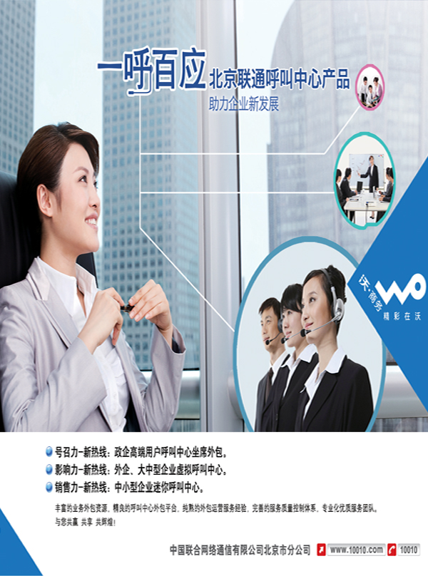 北京聯(lián)通外包呼叫中心的前身為奧運呼叫中心,2008年奧運會結(jié)束,先后承擔了奧運會、殘奧會賽會志愿者招募咨詢、奧運會、殘奧會票務咨詢、奧運特許商品質(zhì)詢及“好運北京測試賽”等一系列與奧運會、殘奧會緊密相關(guān)的服務工作。