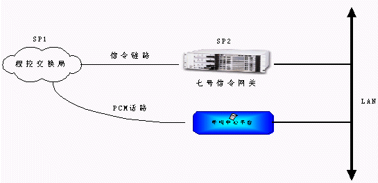 從程控端局送出來的信令和話路通過不同的PCM傳輸,信令鏈路接到七號信令網(wǎng)關(guān)轉(zhuǎn)換,通過消息方式傳遞到呼叫中心平臺,而話路則直接通過PCM線連接到電信平臺上進行話路連接。這種方式結(jié)構(gòu)明晰,有利于系統(tǒng)管理,大大增強了系統(tǒng)容量的擴展能力。
