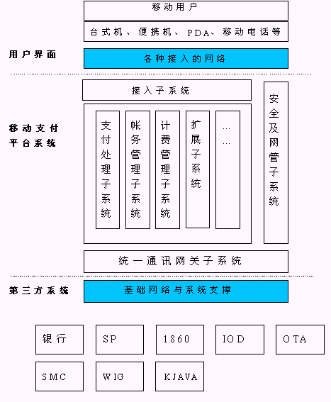 2、 移動支付平臺是一開放的平臺,可以連接多家銀行和多家商家,可以與現(xiàn)有的網上銀行系統(tǒng)進行連接;平臺連接標準化,提供開放的API及接口協(xié)議,能夠快速加載商家業(yè)務系統(tǒng),利于業(yè)務拓展;