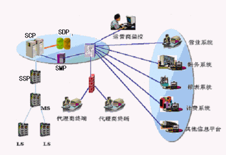 4、SMAP:負(fù)責(zé)在一定的權(quán)限內(nèi)為代理商提供接入訪問功能,支持代理商通過撥號或DDN專線接入代理商管理系統(tǒng),代理商管理系統(tǒng)存儲代理商所有數(shù)據(jù),提供Web服務(wù)方式的應(yīng)用功能界面。代理商管理系統(tǒng)能夠?qū)I(yè)務(wù)受理的數(shù)據(jù)發(fā)送到智能網(wǎng)、交換機(jī)系統(tǒng),完成代理商對所代理業(yè)務(wù)的實時處理。