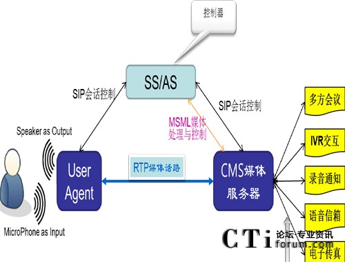 CMS媒體服務(wù)器采用SIP信令作呼叫的會話控制,采用MSML作媒體的控制,為軟交換和應(yīng)用服務(wù)器(作為媒體的控制器)提供媒體資源處理功能。
