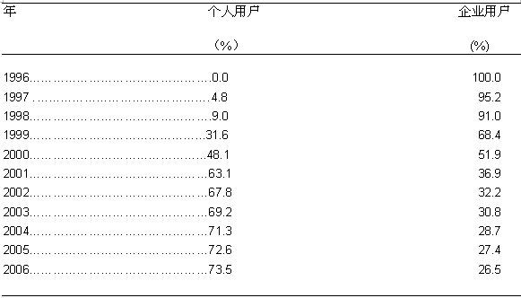 圖三: 美國DSL接入服務市場企業(yè)和個人用戶的發(fā)展趨勢