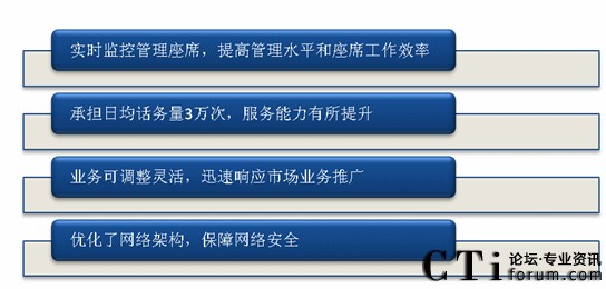 北京農(nóng)村商業(yè)銀行呼叫中心項(xiàng)目負(fù)責(zé)人在接受采訪時(shí)表示,從銀行的運(yùn)營(yíng)管理角度而言,通過(guò)部署IPCC解決方案,實(shí)現(xiàn)了以下改變:一、實(shí)時(shí)監(jiān)控管理座席,提高了管理水平和座席工作效率;二、系統(tǒng)日承擔(dān)話(huà)務(wù)量3萬(wàn)次,服務(wù)能力有所提升;三、可以靈活調(diào)整業(yè)務(wù),迅速相應(yīng)市場(chǎng)業(yè)務(wù)推廣;四、優(yōu)化了網(wǎng)絡(luò)架構(gòu),保障了網(wǎng)絡(luò)安全。