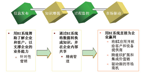 而在當(dāng)前企業(yè)轉(zhuǎn)型的關(guān)鍵階段,我們更要強調(diào),通過BI系統(tǒng)對數(shù)據(jù)的分析挖掘形成企業(yè)內(nèi)部能夠共享的知識,真正運用到企業(yè)運營的各個環(huán)節(jié)中去,支撐精細化營銷和精確化管理等。