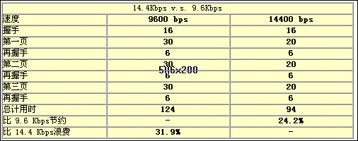 東進(jìn)傳真卡TC-04FM采用RockWell的33.6K的芯片,提供的傳真速率是 14.4Kbps,相對于 9.6Kbps,可以節(jié)約24.2%的時(shí)間(按3頁傳真計(jì)算)。各項(xiàng)操作的占用時(shí)間比較表如下: