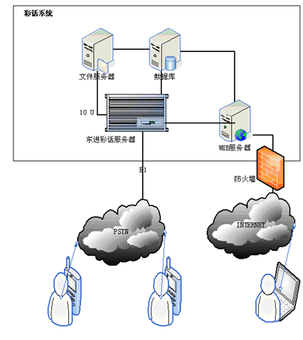 用戶在撥打電話時(shí)可撥打本系統(tǒng)特服號(hào)xxxxx+被叫電話號(hào)碼,系統(tǒng)將接通其指定的被叫電話號(hào)碼,同時(shí)加入背景音樂功能,用戶在系統(tǒng)接通被叫號(hào)碼后,在與被叫方進(jìn)行通話的過(guò)程中,就可以使用事先設(shè)定的背景了。