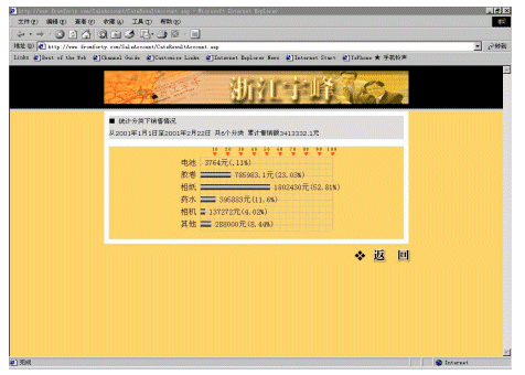 宇峰公司(www.fromforty.com)是柯達(中國)有限公司在中國華東地區(qū)的總代理,負責管理華東地區(qū)近600個分銷商和連鎖店。公司非常重視信息化建設(shè),添設(shè)了大量的計算機,建立起初步的管理系統(tǒng)。但是直到2000年還是依靠E-mail傳遞大量的Excel表格獲取需要的產(chǎn)品銷售和庫存的信息。這些表格對各級分銷商查詢和統(tǒng)計數(shù)據(jù)來說非常麻煩,因為每周要處理幾百個訂購單。整個處理過程非常緩慢,并且成本很高,也容易造成各種的數(shù)據(jù)錯誤。而公司內(nèi)部對業(yè)務(wù)人員銷售情況的統(tǒng)計,也頗為麻煩,因為下級分銷商上報上來的數(shù)據(jù)準確性差,并且不夠及時。處理這些表格對宇峰公司和分銷商以及連鎖店而言都是效率很低的,并且常常令人茫然不知所措。