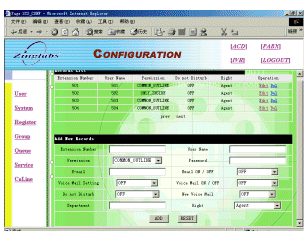 ZINGSERV的一些管理配置工作可由基于WEB的配置程序完成,前面已經提到的ACD和IVR的配置就是ZINGSERV管理配置功能的一部分。