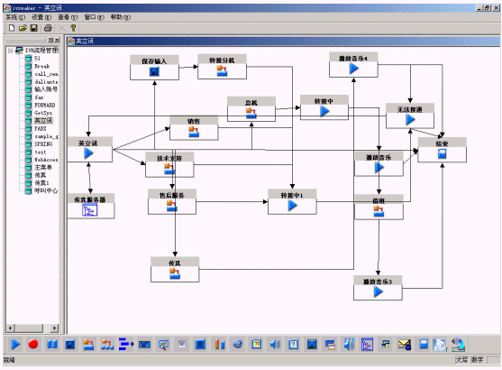 IVR Maker是一個(gè)圖形化的業(yè)務(wù)流程生成環(huán)境,通過(guò)它可以生成新的IVR自動(dòng)業(yè)務(wù)流程或維護(hù)舊的流程,生成的流程能夠在線調(diào)試,調(diào)試好的流程可以在線加載到IVR上運(yùn)行。