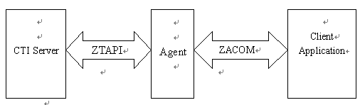 通常呼叫中心的座席軟件都需要用戶定制,以便在標(biāo)準(zhǔn)的座席功能上加入業(yè)務(wù)處理功能,并且要求能與業(yè)務(wù)系統(tǒng)交換數(shù)據(jù)。用戶可以利用ZTAPI接口直接定制自己的座席軟件,也可以使用Agent軟件自帶的COM開發(fā)接口來(lái)實(shí)現(xiàn)同樣的功能。后者是一種更便捷的機(jī)制,因?yàn)榭梢灾苯邮褂肸ingServ®標(biāo)準(zhǔn)的座席軟件--Agent的座席功能,用戶可以把更多的精力投入到業(yè)務(wù)處理功能,使用ZACOM要求使用時(shí)需運(yùn)行Agent軟件。ZACOM開發(fā)結(jié)構(gòu)示意圖如下: