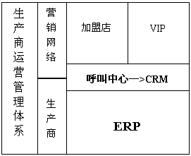 ERP系統(tǒng)著重響應(yīng)定單、組織生產(chǎn)和管理庫存,它通過呼叫中心與營銷網(wǎng)絡(luò)頻繁而及時(shí)地交換數(shù)據(jù)。CRM系統(tǒng)著重組織營銷、管理市場(chǎng)和提供服務(wù),它直接指導(dǎo)和規(guī)范呼叫中心的業(yè)務(wù)處理流程。有了呼叫中心強(qiáng)大的響應(yīng)和處理能力的支持,生產(chǎn)商的ERP和CRM系統(tǒng)就緊緊地與營銷網(wǎng)絡(luò)咬合在一起,營銷和生產(chǎn)之間的斷層被徹底消除。