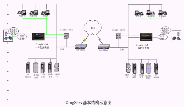 硬件:有ZingSwitch®的點都有ZingSwitch®交換機,S口網(wǎng)關和CO8卡或E1 接口網(wǎng)關和E1卡。 無ZingSwitch®的點配置O口網(wǎng)關或E1