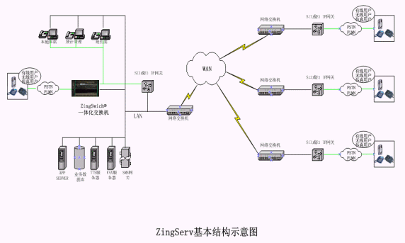 硬件:各點都有ZingSwitch®,S口網(wǎng)關和CO8卡或E1 接口網(wǎng)關和E1卡。