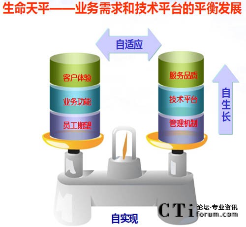 “生命天平”所體現(xiàn)的聯(lián)絡中心運營管理是一個動態(tài)持續(xù)的過程,客戶體驗、業(yè)務功能和員工期望是不斷變化的,這就要求平臺要具有生命力,要不斷滿足客戶和業(yè)務新的需求,能夠主動的根據(jù)客戶體驗提升服務品質(zhì),跟隨業(yè)務功能變化提升技術(shù)平臺,結(jié)合員工期望,完善和改進管理機制。使聯(lián)絡中心始終處于自生長、自適應、自實現(xiàn)的平衡調(diào)節(jié)過程中。