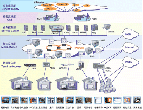 開展的節(jié)目:時(shí)移電視、直播電視、點(diǎn)播、寬帶、游戲、IP電話等;