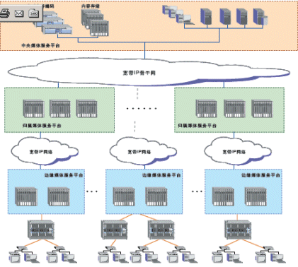 奔流(RollingStream)系統(tǒng)可以支持百萬(wàn)級(jí)別的用戶規(guī)模,支持3級(jí)和多級(jí)部署架構(gòu)。包括中心節(jié)點(diǎn)(CMS)、區(qū)域匯聚節(jié)點(diǎn)(HMS)以及邊緣服務(wù)節(jié)點(diǎn)(EMS)。奔流(RollingStream)系統(tǒng)對(duì)于寬帶IP網(wǎng)絡(luò)的容忍度是很高的,可以支持各種網(wǎng)絡(luò)承載形式,也可支持各種接入方式。如LAN接入、DSLAM接入、GEPON接入。對(duì)于IPTV系統(tǒng),可建設(shè)專網(wǎng),CMS和HMS、EMS直接相連,也可以旁掛在城域網(wǎng)上。另外,無論P(yáng)PPoE還是DHCP上網(wǎng)方式都可以支持。