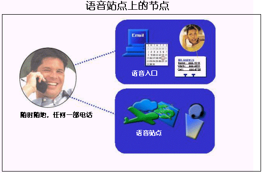 在語音網(wǎng)上,內(nèi)容和服務(wù)將會以兩種方式出現(xiàn)即個人語音站點和語音入口。語音入口和語音站點都屬于網(wǎng)絡(luò)上的節(jié)點,這兩者由一個標準的語音瀏覽器連接起來,關(guān)于這部分內(nèi)容,將在以后進行描述。