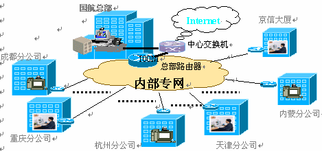 國航營銷部需要在已有的網絡平臺上,建立一個能進行總部與各分公司之間交互式溝通的環(huán)境,需要一種網絡多媒體協(xié)同工作的應用。