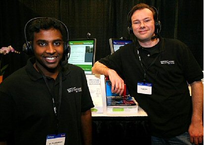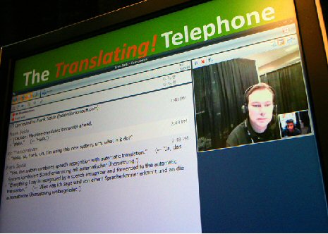 Thambiratnam說:“當多種不同背景的人需要一起交流時,我們的技術就能提供非常大的便利!盩hambiratnam用同聲傳譯電話展示了這樣一種的情景:Thambiratnam說英語,他要給他的德國籍經理Frank