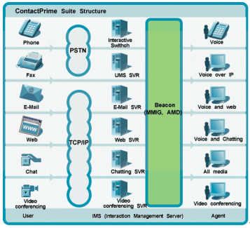 ContactPrime Beacon是ContactPrime系列產品中的一個組件,它是核心組成元件,可為CSR處理和提交各種多媒體,包括電話、傳真、電子郵件、VoIP、FoIP、語音郵件、Web交互、聊天、視頻會議及Web協(xié)作等。