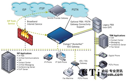 圖:企業(yè)網(wǎng)絡中的Dialogic® BorderNet™ 500網(wǎng)關