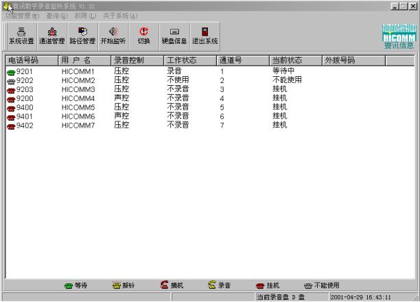 系統(tǒng)管理員可以方便地對(duì)所錄音的電話進(jìn)行管理,譬如設(shè)定每一條線路的電話號(hào)碼、使用者、是否錄音,錄音的方式等。