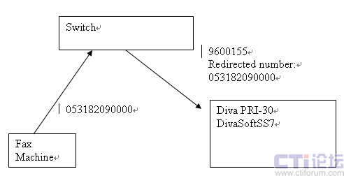 Dialogic Diva SS7傳真解決方案簡介:以往的傳真運營在處理接收傳真的時候都是通過提供一個接入平臺號(例如山東網(wǎng)通的商務新動力為9600155),然后通過語音提示輸入傳真信箱號。這樣做的缺點在于對于所有的客戶來說接入號碼都是統(tǒng)一的,不能滿足個性化需求。有一些客戶不想失去原有的傳真機號碼。希望網(wǎng)絡傳真系統(tǒng)能夠綁定他們原來的傳真?zhèn)髡鏅C號碼。例如某客戶原有的號碼是053182090000,通過號碼綁定,當其他用戶向他發(fā)傳真的時候,撥打的號碼是053182090000,但是此呼叫會被呼轉(zhuǎn)到9600155。傳真平臺根據(jù)原始被叫號來接收傳真。原有的基于PRI的解決方案不能解決原始被叫號的傳送問題,所以必須借助SS7網(wǎng)絡才能實現(xiàn)?蛻魮艽053182090000,呼叫被呼轉(zhuǎn)到9600155.在Redirected