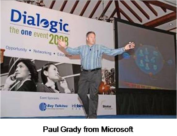 第二天上午,會(huì)議以Dialogic總裁兼CEO Nick Jensen強(qiáng)有力的演講開始,隨后是Dialogic執(zhí)行副總裁兼COO Tim Murray和Dialogic市場高級副總裁Jim Machi。 面向整個(gè)宴會(huì)廳的與會(huì)者,全天的會(huì)議包括了來自Dialogic產(chǎn)品線總監(jiān)James Rafferty和Dialogic企業(yè)產(chǎn)品線市場經(jīng)理Bud Walder等內(nèi)部演講者,和來自Yankee Group, PT. Excelcomindo Pratama 和Microsoft等外部演講者們激動(dòng)人心的演講。會(huì)議結(jié)束時(shí),由我們的合作伙伴Bay Talkitec贊助,有三個(gè)幸運(yùn)贏家贏得了iPod touch 16G,iPod nano 8G和4G。