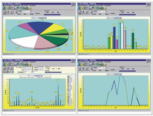 - 提供日期、月份、年度之分析統(tǒng)計圖表,且該分析統(tǒng)計圖 表還可針對金額、秒數(shù)、通數(shù)之條件列示各種統(tǒng)計分析圖表。