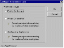 TeleConference系統(tǒng)內(nèi)的任一個分機,都可以利用瀏覽器(Internet Browser)來預(yù)約會議時間,而參加會議的人可以在會議開始時,自動打電話進系統(tǒng)參加會議就像加入“聊天室“一樣簡單。