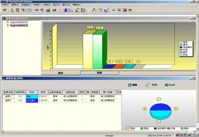 座席狀態(tài)實(shí)時(shí)監(jiān)控圖形顯示;線(xiàn)路狀態(tài)實(shí)時(shí)監(jiān)控圖形顯示;按時(shí)間以及不同條件進(jìn)行查詢(xún)的完善的歷史數(shù)據(jù)分類(lèi)分析及統(tǒng)計(jì);以統(tǒng)計(jì)報(bào)表形式提供中心各狀態(tài)及業(yè)績(jī)信息作為考評(píng)依據(jù);按Excel方式輸出報(bào)表,提供進(jìn)一步編輯功能。其所生成的上百?gòu)垐?bào)表,可以協(xié)助企業(yè)有效管理資源,檢查成本,預(yù)測(cè)改善現(xiàn)有運(yùn)作的潛在需求。