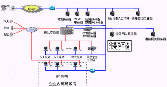 對(duì)于大中型的企業(yè)客戶服務(wù)中心系統(tǒng),可選用排隊(duì)交換機(jī)作為語(yǔ)音接入設(shè)備,保障系統(tǒng)的高可靠性和穩(wěn)定性;對(duì)于20個(gè)以下座席的中小型企業(yè)客戶服務(wù)中心系統(tǒng),則建議使用基于計(jì)算機(jī)語(yǔ)音板卡的形式,可以減少企業(yè)投資,同時(shí)具有良好的系統(tǒng)性能;以確保合理的、較少的投入,獲取最佳的配置,滿足不同企業(yè)()的需求。