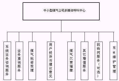 客戶利用電話、手機(jī)等撥打某一特服號碼(如9xxxx)進(jìn)入中小型煤氣公司多媒體呼叫中心系統(tǒng),本系統(tǒng)依托煤氣公司各類業(yè)務(wù)技術(shù)支持系統(tǒng)和網(wǎng)絡(luò)系統(tǒng),通過人工受理或自動(dòng)語音服務(wù)等方式全天24小時(shí)不間斷地為客戶提供各種服務(wù)。