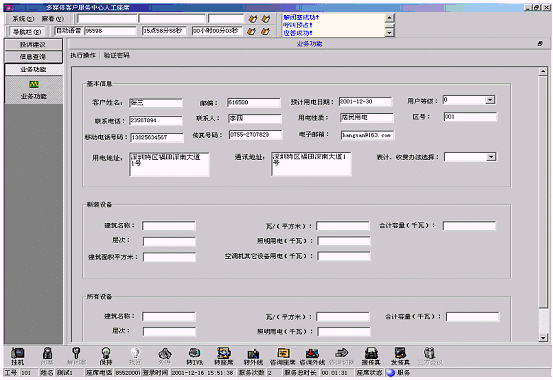 客戶信息包括客戶編號、客戶名稱、聯(lián)系電話、地址、所屬地區(qū)、地區(qū)編號、用戶人口數(shù)、樓層等多項(xiàng),接聽客戶呼入電話,由座席代表記錄信息形成檔案,也可采用更為主動(dòng)的呼出方式來確認(rèn)、核實(shí)、補(bǔ)充檔案。