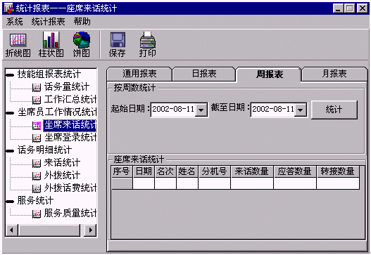 ·座席員來話統(tǒng)計:按座席員統(tǒng)計來話情況。