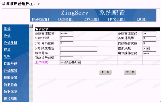 系統(tǒng)維護管理界面:
