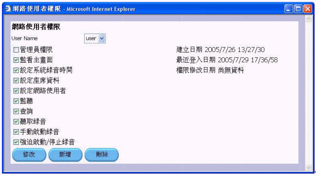 使用者權限:可在線創(chuàng)建新用戶,并可設定多級權限。