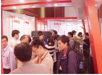 ![]() 圖1: OKI展臺內(nèi)參觀者濟(jì)濟(jì) |
