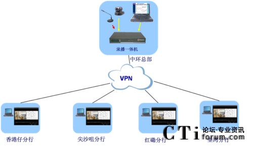 信誠證卷希望構(gòu)建一套基于VPN網(wǎng)絡(luò)的遠(yuǎn)程培訓(xùn)系統(tǒng),方便集團(tuán)總部和分支機(jī)構(gòu)職員的隨時(shí)隨地的培訓(xùn)和學(xué)習(xí)需要。系統(tǒng)要求可以同步錄制培訓(xùn)過程的視音頻和PPT,并可實(shí)時(shí)直播集團(tuán)下屬的尖沙咀等分行,職員也可以事后登陸系統(tǒng)進(jìn)行點(diǎn)播學(xué)習(xí)。