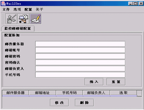 ·點(diǎn)擊主窗口中按鈕進(jìn)入配置監(jiān)控郵箱窗口: