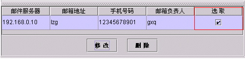 ·修改監(jiān)控郵箱配置時(shí),首先點(diǎn)擊'選取'項(xiàng)中的小方框,選中該列然后雙擊要修改項(xiàng)的內(nèi)容,修改完畢后按下Enter即回車鍵,再點(diǎn)擊修改按鈕即可,如下圖