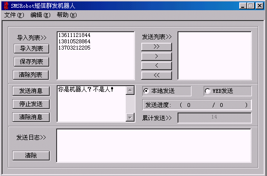 ·用NotePad編輯手機(jī)號(hào)碼列表,在主窗口中點(diǎn)鈕,打開已編輯好的手機(jī)列表
