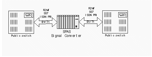 因為信令標準不同,部分國外通信設備無法與國內(nèi)通訊網(wǎng)互通互連,SPAS-2000可編程交換機接口豐富,支持信令標準全面,成本低廉,可以為中國一號信令、七號信令、ISDN PRI(E1/T1)、環(huán)路信令、接入網(wǎng)V5信令等標準之間的轉(zhuǎn)換提供靈活完整的解決方案,同時當輸入和輸出的中繼接口不同時,其語音編碼可能不同,可利用多功能信號音板實現(xiàn)語音編碼的轉(zhuǎn)換(例如可以實現(xiàn)A LAW和U LAW之間的語音互轉(zhuǎn))。連接圖見圖1: