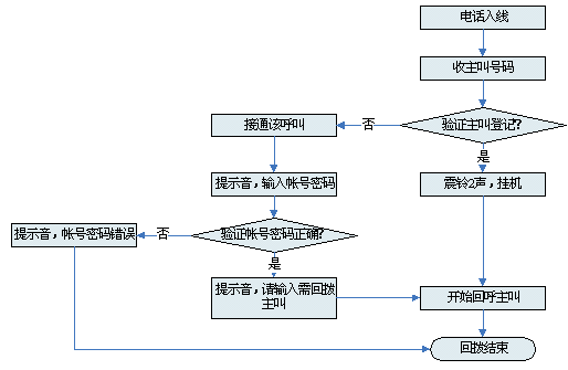 對接入系統(tǒng)的電話均進行主叫識別,如果主叫沒有注冊,系統(tǒng)語音提示后,主動釋放電話 |
