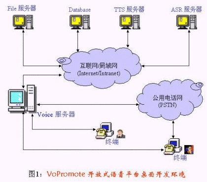 圖1是VoPromote 1.0開(kāi)放式語(yǔ)音平臺(tái)桌面開(kāi)發(fā)系統(tǒng)體系結(jié)構(gòu)。